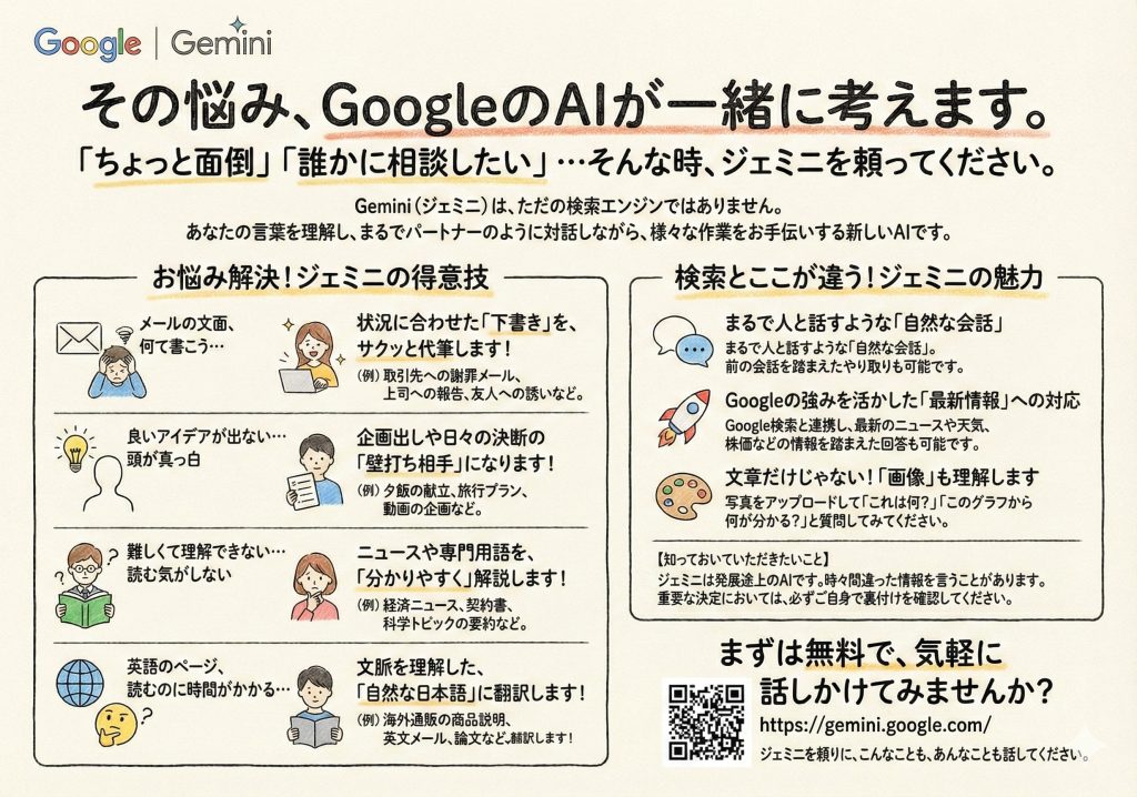 そこで、Gemini本人にGeminiを分かりやすく解説してもらいます!